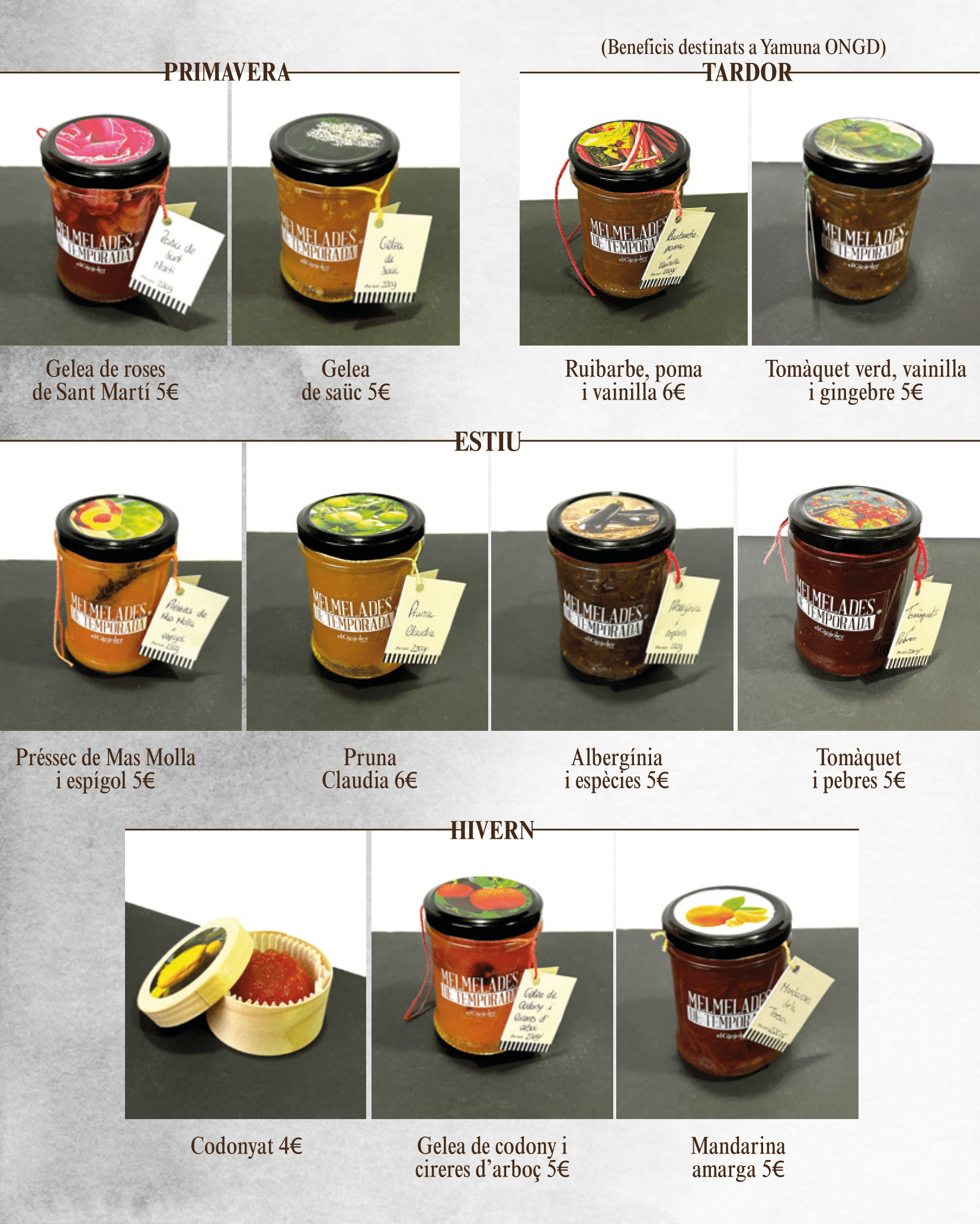Una història de productes que neixen a prop i d’elaboracions que fem nosaltres mateixos, amb cura, respecte i temps. Melmelades de temporada, conserves, rebost salat, galetes i torrons... tot creat al nostre obrador a partir de productes de proximitat i del que ens dona la terra. Per això, aquest any pots crear el teu LOT de Nadal producte per producte, triant allò que més t’agradi.