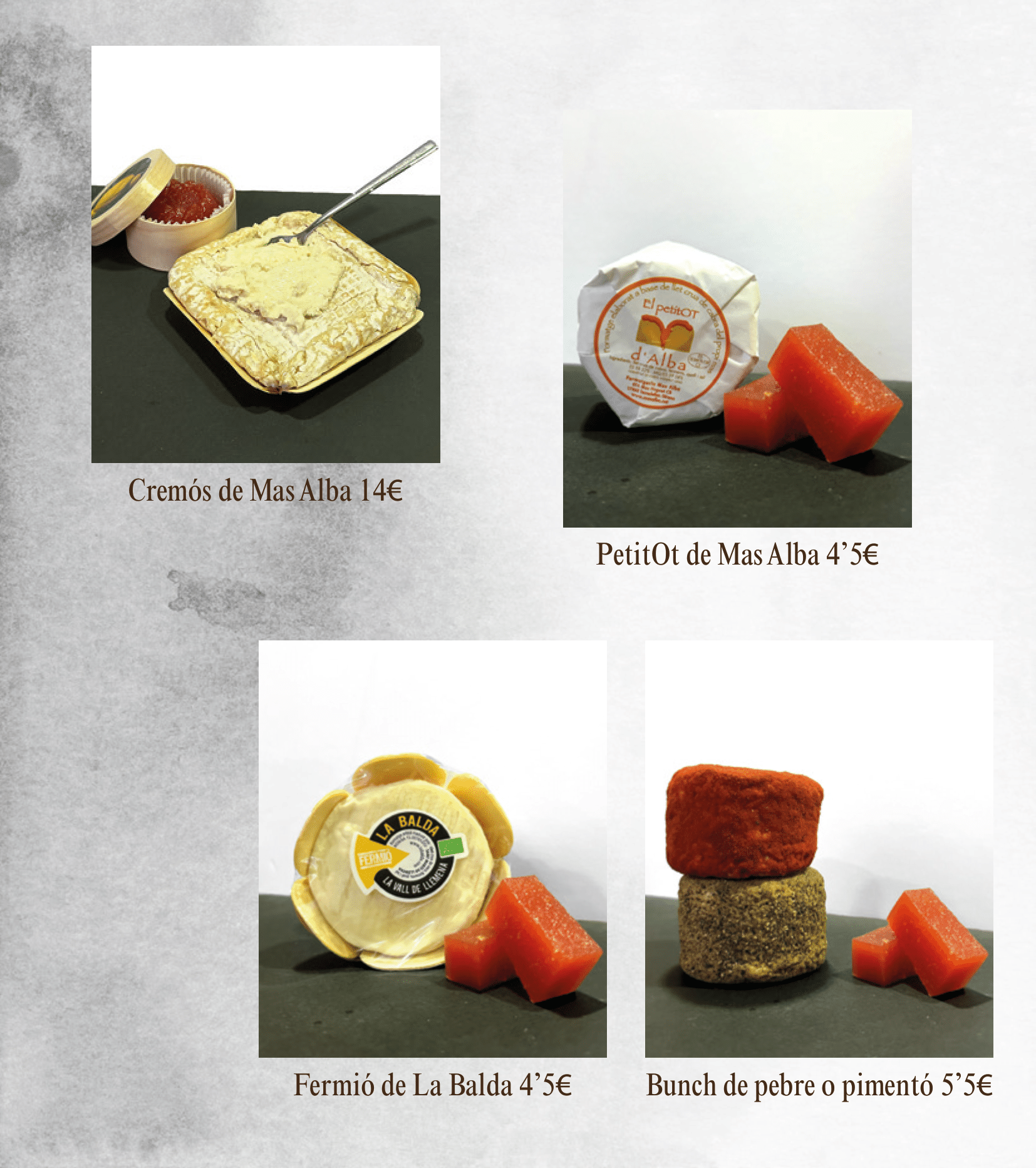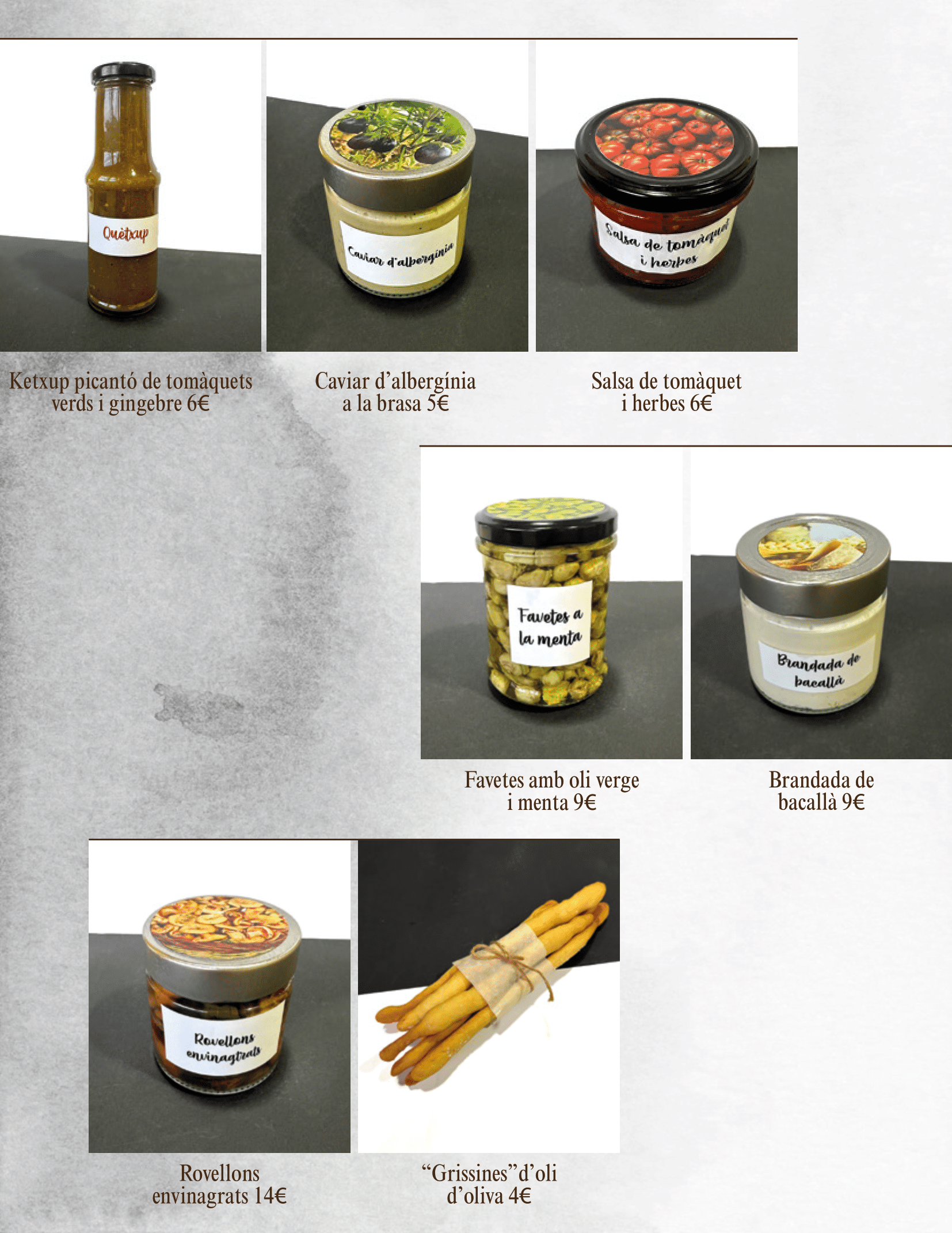 La majoria de productes estan elaborats per nosaltres; només els formatges provenen de productors amics amb qui compartim manera de fer, qualitat i respecte pel territori. No cerquem etiquetes: cerquem autenticitat, traçabilitat i honestedat.